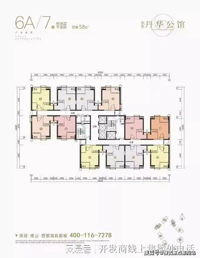 梯户比:58㎡户型为 4 梯 12 户,101㎡户型为 4 梯 7 户。