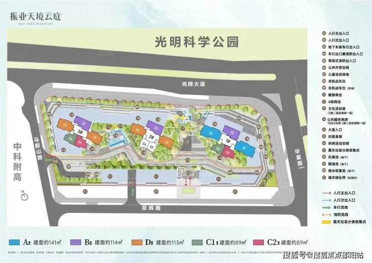 振业天境云庭,位于光明中心区光辉大道与华夏路交汇处西南侧,项目所在的光明中心区是光明规划最宜居,居住小区板块最大的片区,北侧仅靠科学公园,深圳美术馆、深圳科技馆新馆等都是位居于此,距离最近的6号地铁线“楼村站”约950米。振业天境云庭:项目占地面积约1.22万㎡,规划总建筑面积约8.96万㎡,计容积率建面约5.85万㎡,容积率4.7;小区包含商品住宅(4.2万㎡)、自住租赁(0.3万㎡)、移交政府保障租赁(0.5万㎡)、裙房商业(0.3万㎡)、文化活动室(0.15万㎡)、基础生活配套设施等,是一个多种居住属性混合的楼盘;