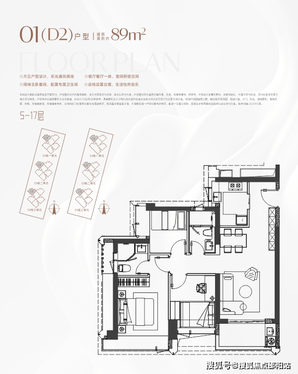 由53栋三个单元组成,3梯5户的配置,户型在89-190㎡之间,主打三到四房,共516套,小户型适合刚需家庭。
