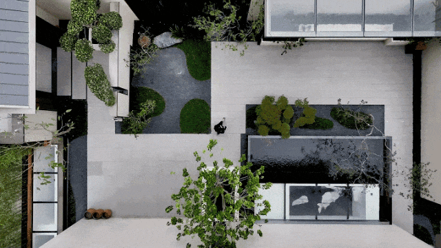 其四,私密度更是堪称一绝。通过景观中轴的绿植与瀑布流水分割,实现墅区的单独管理,将叠墅居境的私享感与场域感最大化。