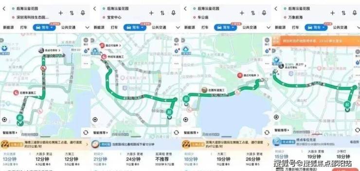 <自驾>:周边分布有多条高速/快速路及区域主干道,如西侧是后海大道,北侧是滨海大道、南侧是东滨隧道,去往南山科技园13分钟,去往前海、福田、宝中大概在15-20分钟。