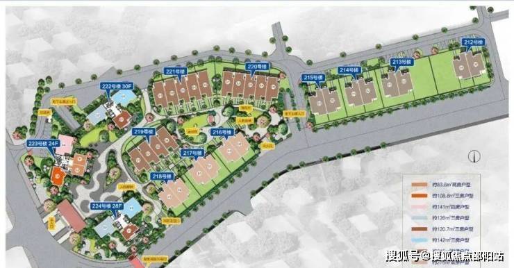 3栋住宅楼(260户):222-224#为80-142㎡二三四房的住宅产品