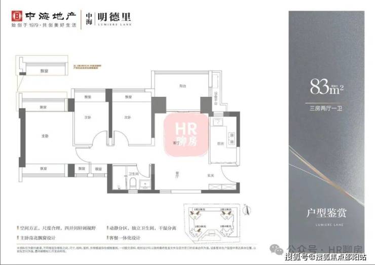 产品面积段:建面约83—113㎡三至四房