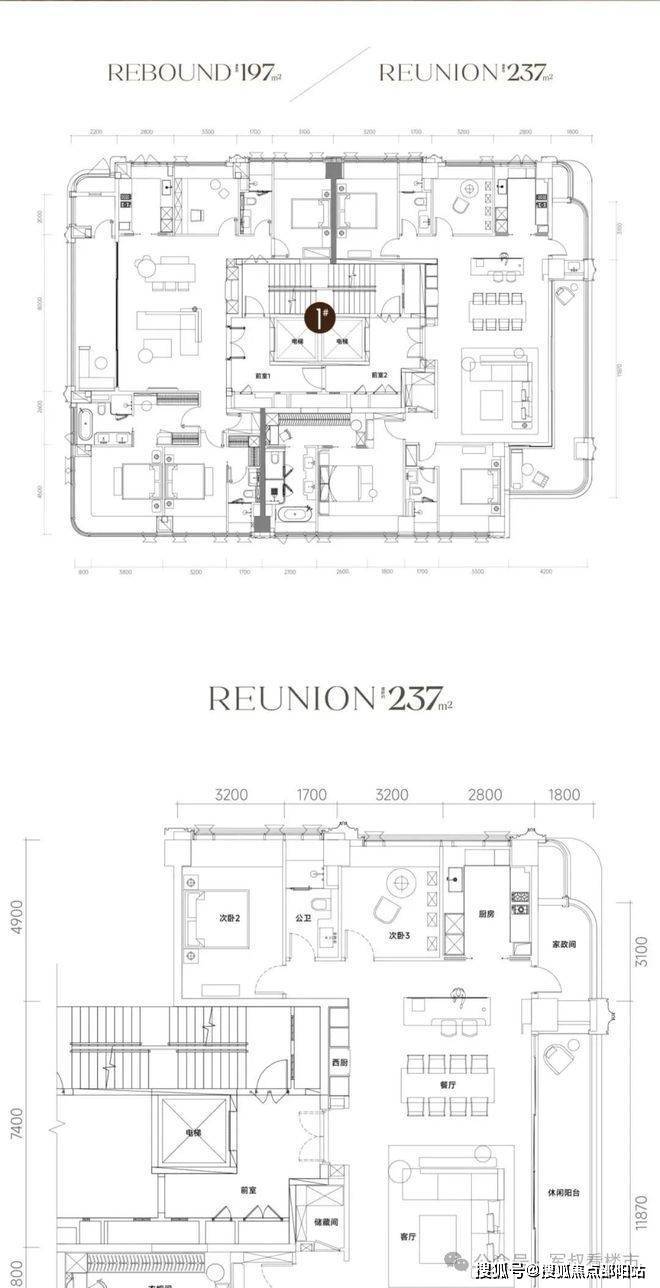 预计首推1栋42套97-237㎡四房大平层,2T2小高层(25F)纯板楼设计,据网上测得数据,拓展后使用率超90%!