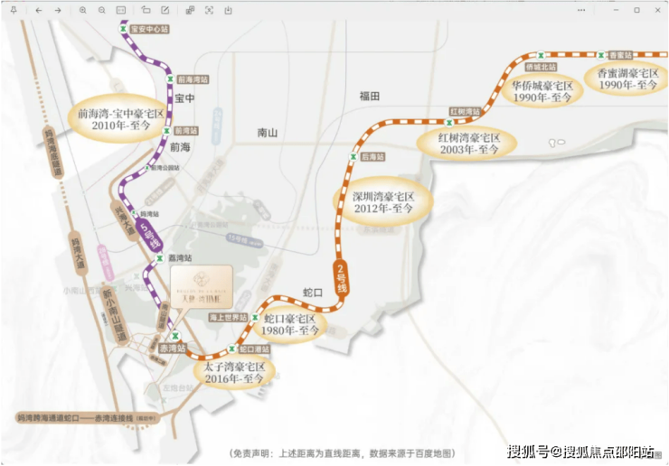 项目距地铁2号线与地铁5号线首发赤湾站约300m(直线距离),从此,坐地铁而不是站地铁,未来新小南山隧道(预计2027年竣工)、望海路升级等重大交通配套持续落地,咫尺间连通蛇口、前海。
