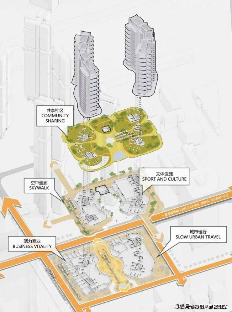 目前项目最新效果图已流出,其设计以“浮岛双境”为概念,通过竖向与水平维度的空间重构,实现建筑与城市的共生、公共与私密的平衡。