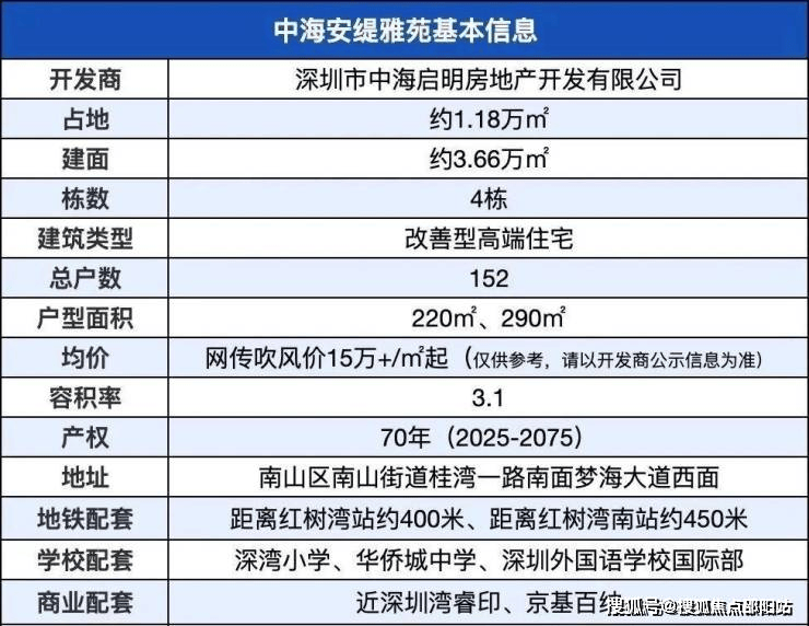 作为中海顶序“安系”首入深圳的标杆之作,将延续“安系”顶豪定位、并带来产品端的全面升级。参考深湾玖序14.3万均价、25年成交价15.7万,加上安缇深圳本身不限价、产品突破非常明显,预计价格会进一步拉升。