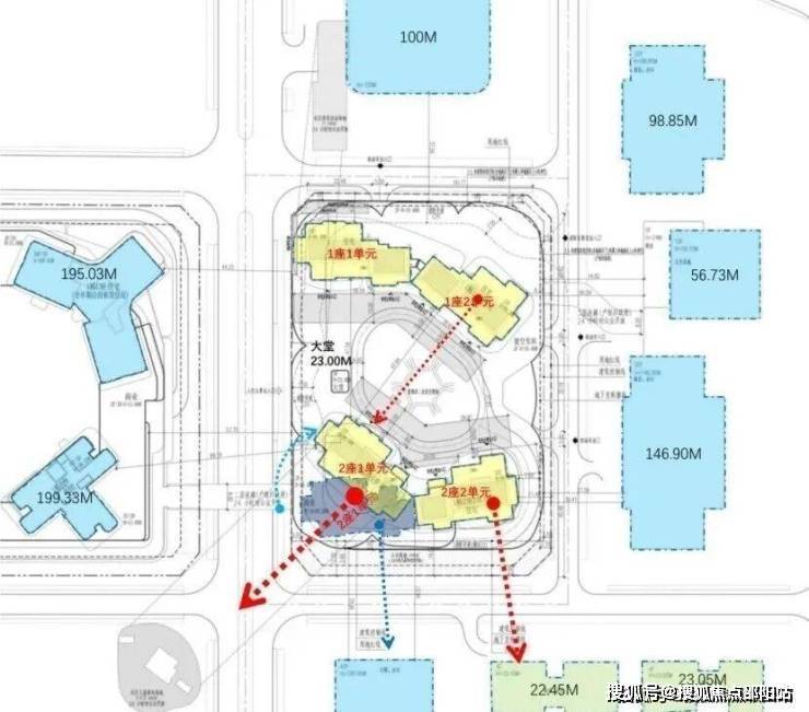 项目占地面积约1.18万㎡,总建筑面积约76619㎡,其中住宅建面36584㎡;整体容积率3.48,住宅部分容积率低至3.1,建筑限高99.3米,规划为22层纯板楼结构。