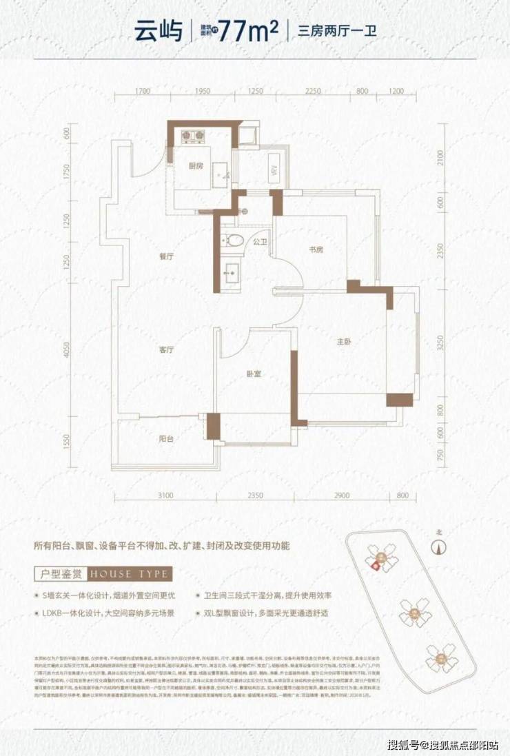 约79㎡(三房一卫): 折后总价255万起