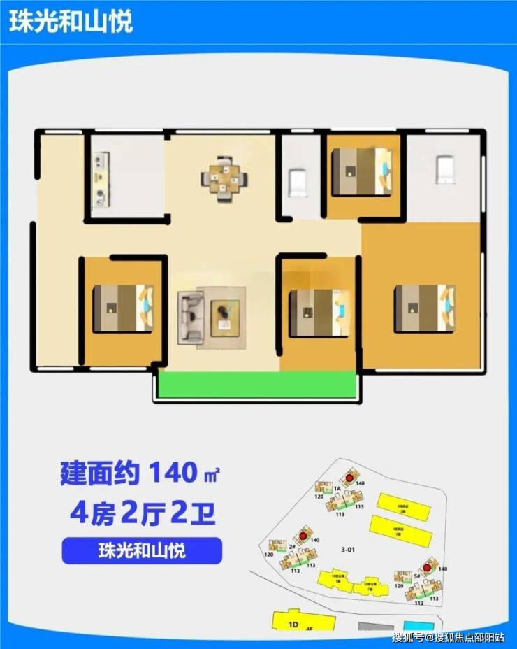 珠光和山悦项目的户型选择中,120平朝南4房是综合性价比最优的选择。该户型采用横厅朝南设计,搭配6米观景阳台。