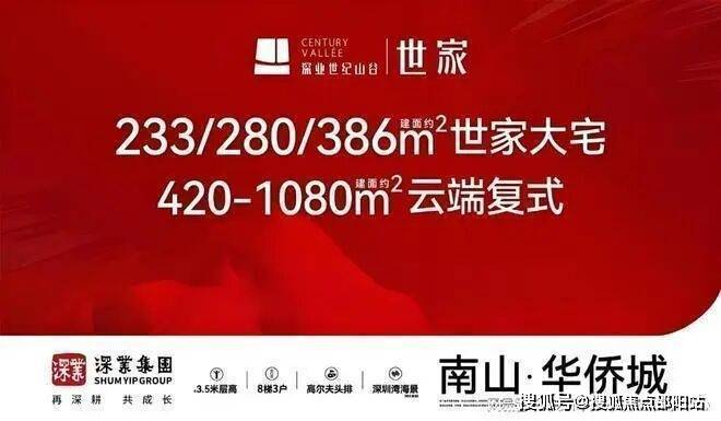深业世纪山谷世家位于深圳华侨城,坐拥山、河、湖、海、园等五重景观。乃深业集团融合40余年开发经验打造的S标首发之作。项目建面约233-1080㎡世家大宅,世界级大师参与设计,国际一线品牌精装,引进国际金钥匙联盟服务标准。采用Y型建筑结构,尽享270°IMAX观景视野;约2400㎡主入口环岛花园等8重礼序,尊享归家礼遇;标准层8梯3户,双专梯入户,私享奢阔境遇;共9大引领级产品力,礼献深湾之巅传世之作。曾荣获CIHAF第二十五届中国住交会“寻找中国好房子 2024年度示范项目”等奖项。