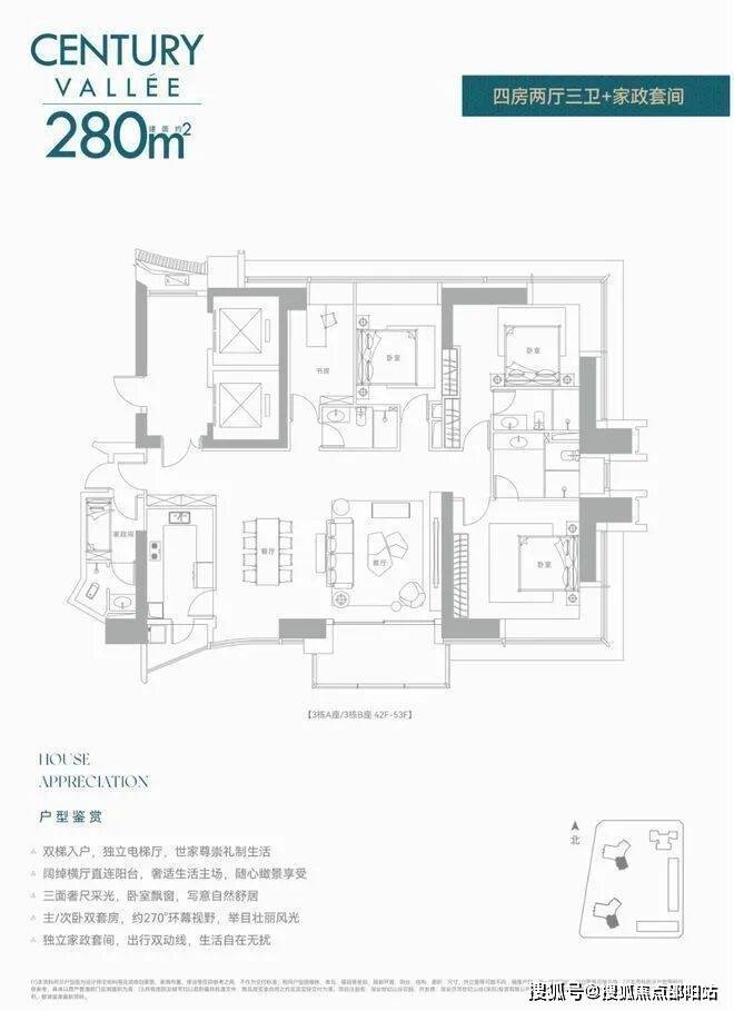 深业世纪山谷前两次都是公寓,现在住宅首发!还是定位相当高端的纯大平层,8梯3户,240㎡/280㎡配备两个独立电梯,380㎡双梯设计,实在任性!
