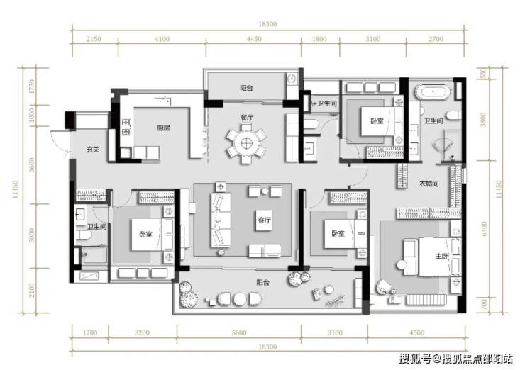 其中入户玄关、餐厅、厨房、卧室、卫生间,均带有飘窗,户型使用率高达97.8%,要知道市面一般只有8成使用率。