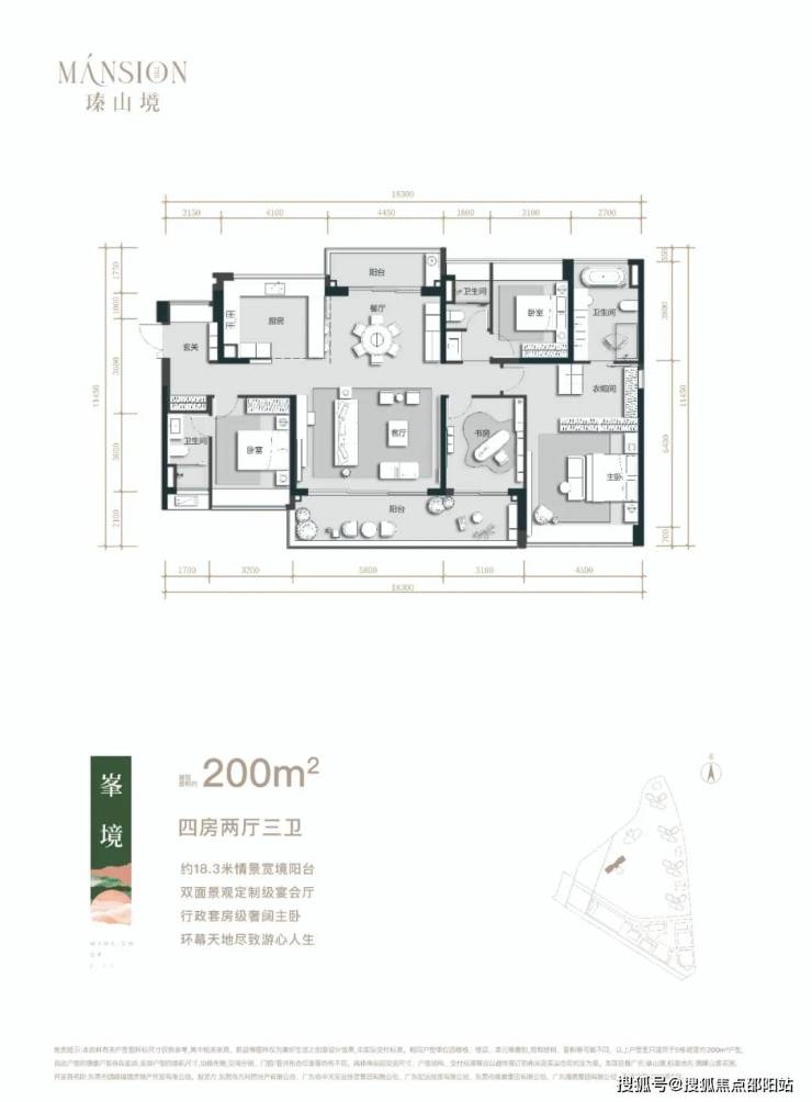 建面约200㎡户型,位置非常优越,视野非常优秀。像餐厅连通生活阳台,直接看黄旗山;南向是约8.9m长的超宽景观阳台。在中心园林之外,高点的楼层更可以看香遇走廊和同沙生态水库。