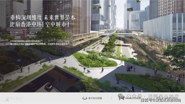 >>立体出行路网 超级交通枢纽项目片区的城市路网将以香港中环为范本,着力建设24米以下魅力“城市” ,并利用10m高人行连廊和10m高骑行系统等打造无车街区,建成未来城市的多元立体交通系统范本。