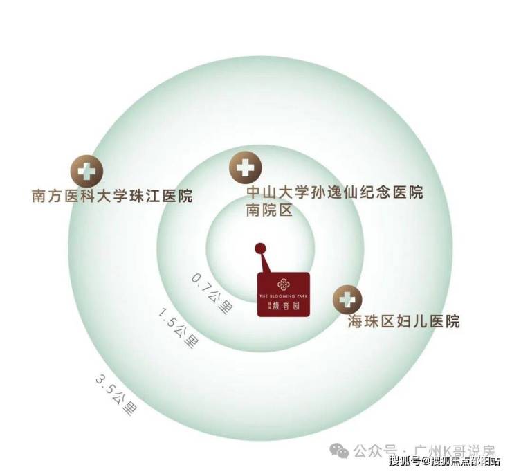 约750米中山大学孙逸仙纪念医院(三甲)约1.5公里海珠区妇儿医院约3.5公里南方医科大学珠江医院、广州医科大学附属第二医院。