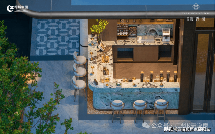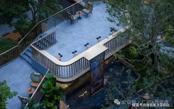 下沉式观瀑亭、露天社交会客厅,水院、园林及各种鲜花交织,仿若置身伊甸花园谧境。