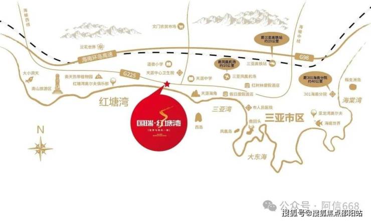 三亚国瑞红塘湾位于三亚市区红塘湾,东侧挨这天涯小镇,和天涯海角景区,项目距离海边仅300米左右。