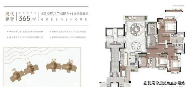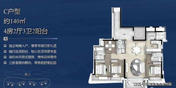 【户型面积】140㎡-270㎡四房双主套;360㎡-480㎡(5房 2 厅双主套+1工人房)三梯两户