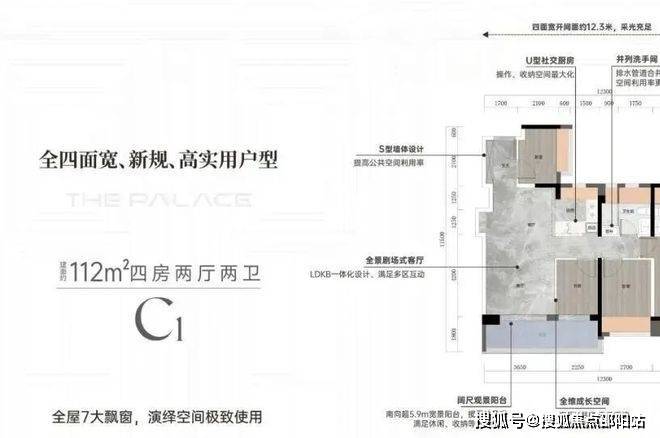 ➢建面约112平方C1户型四房两厅两卫