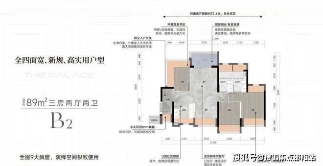 ➢建面约89平方B1/B2户型三房两厅两卫