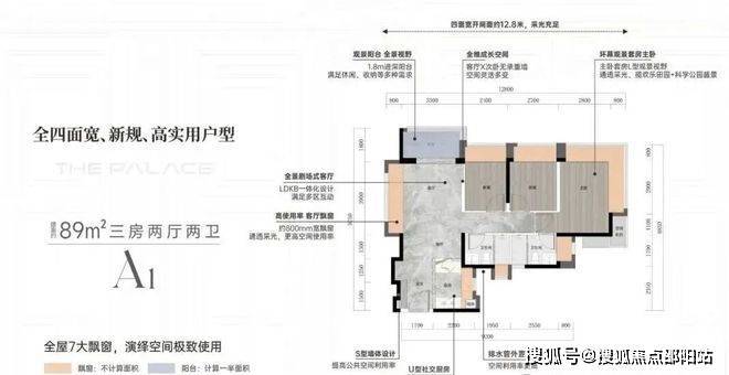 推出项目1栋1单元,2T5户,89㎡竖厅三房两卫,南北通透,带1.8m宽阳台;112㎡四房两卫。户型图和平面图已发布。异地美学创意空间(样板房)已开放。