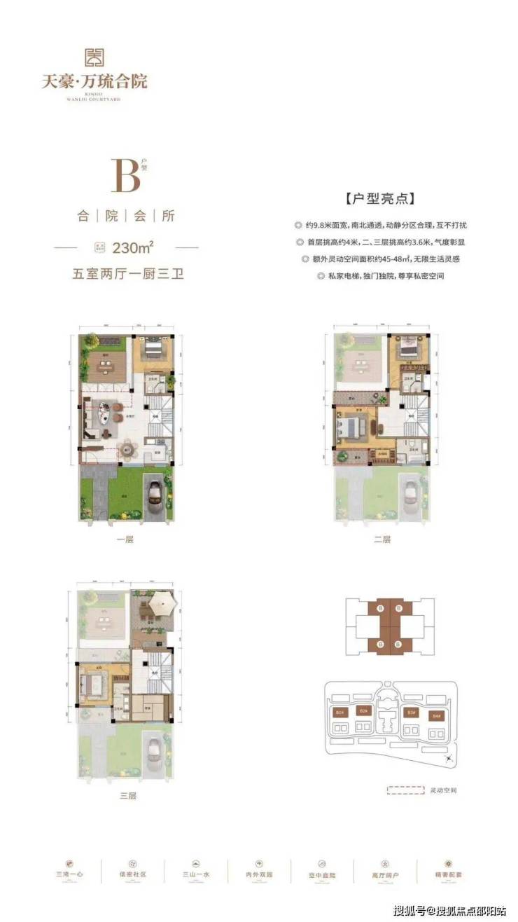 产品户型:建面约230-246㎡花园式合院,建面约276㎡空中平墅