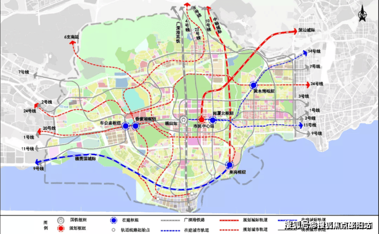 →三轨交汇:地铁9号/4号/22号线(在建中)三轨交汇,直距约300米上梅林站;22号线开通后,直抵香蜜湖