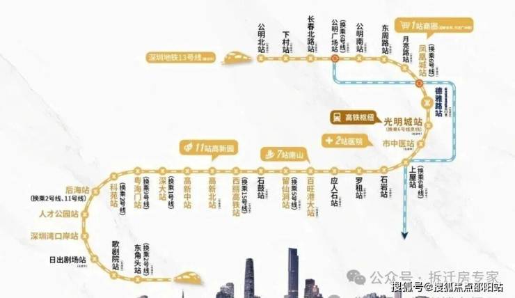 交通配套:观玥名邸家门口就是13号地铁线“德雅路站”,以前的同观路站已经改名,最高时速100公里,预计2025年开通运营,1站可到光明城站,换乘6号线/光明城高铁站,3站可到石岩,7站到西丽,8站到留仙洞总部基地,11站到南山高新园。