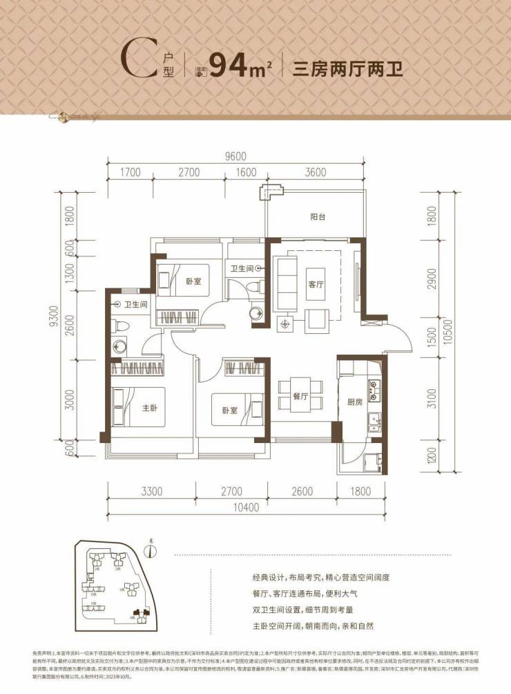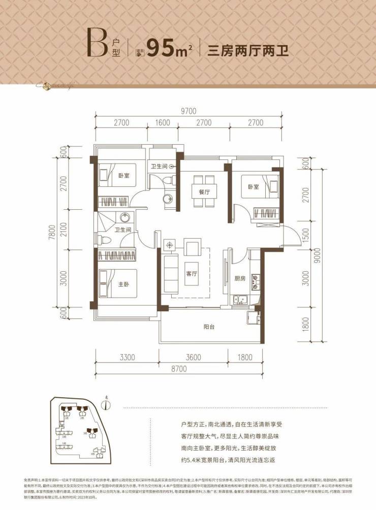 B户型:约95㎡3房2厅2卫