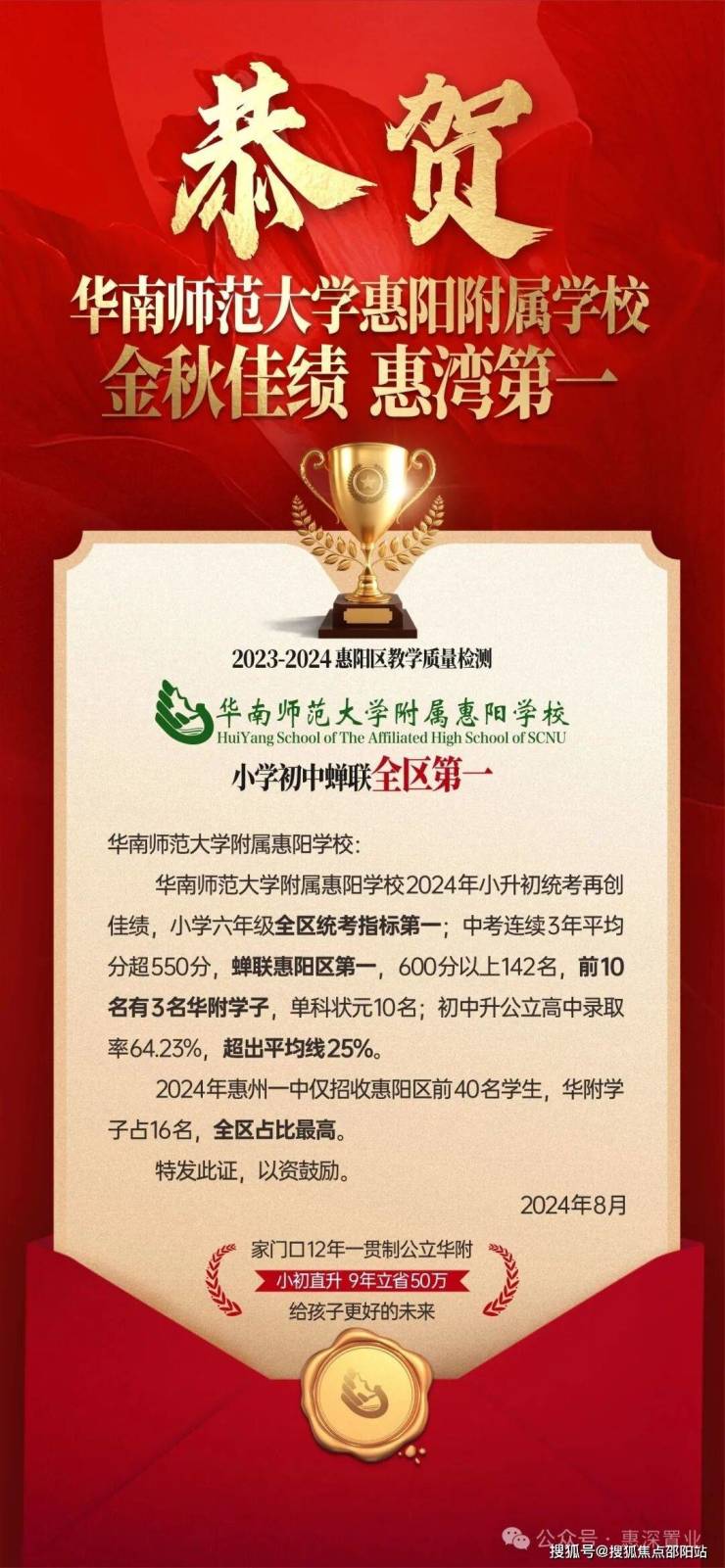 🔱【最强公立小学初中】 家门口12年制公立华附教育,2024年小升初蝉联惠阳第一,连续3年惠湾中考平均分第一;100门特色课,100%编制教师。