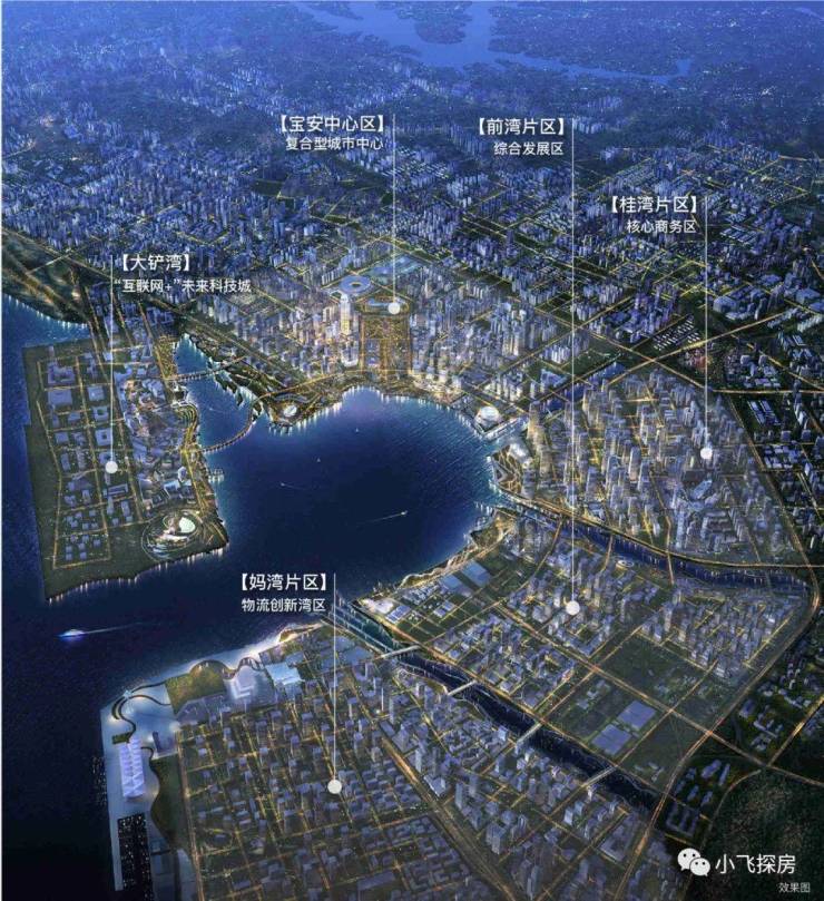 其中腾讯在2019年11月拍下前海大铲湾地块,规划建成200万㎡的“互联网+”未来科技城,总投资额约370亿,一期计划2024年12月竣工,二期计划2026年11月竣工,未来将为片区带来10万+高净值人流。