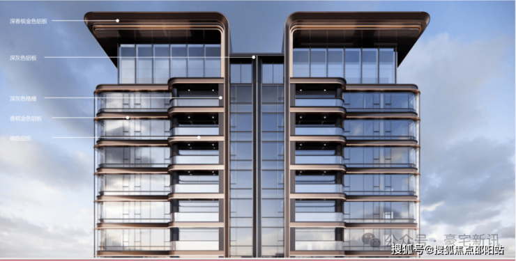 • 45层云端住宅,LOW-E玻璃+铝板外立面
