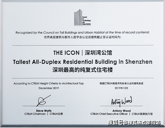 🎉深圳湾公馆荣膺【深圳最高纯复式住宅】——国际权威机构CTBUH认证