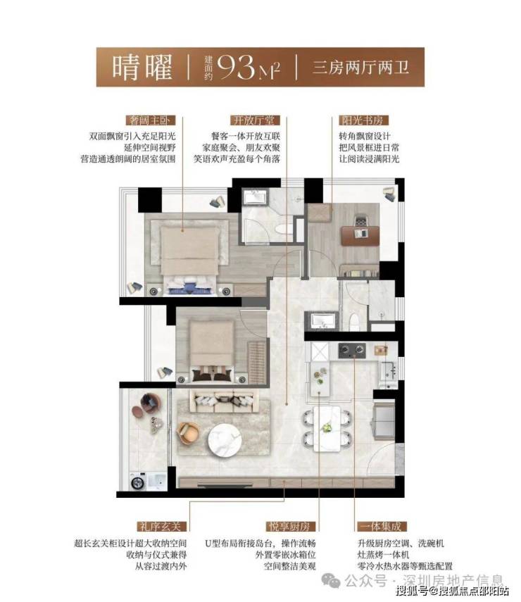 全南向户型社区,结合阔景阳台与多面飘窗,形成三面超长采光面,实现“阳光全屋覆盖”。