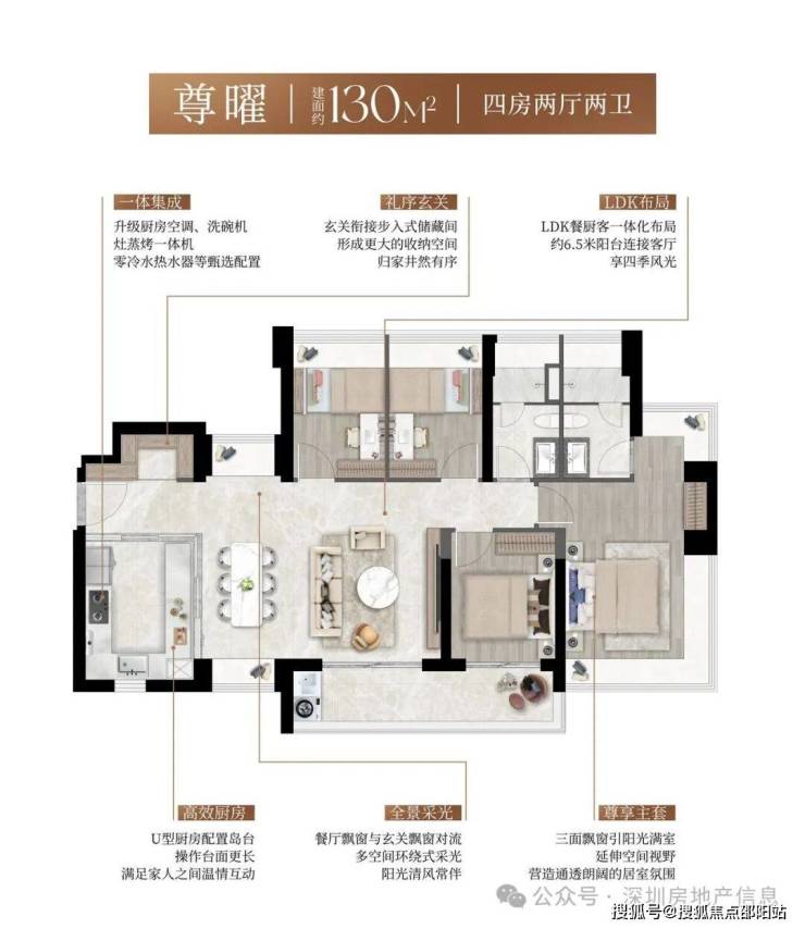 升级配置超大玄关柜、内嵌冰箱、灶蒸烤一体机、零冷水热水器、中央空调、厨房空调、双向流新风系等,无需二次装修,拎包即住,改善一步到位。
