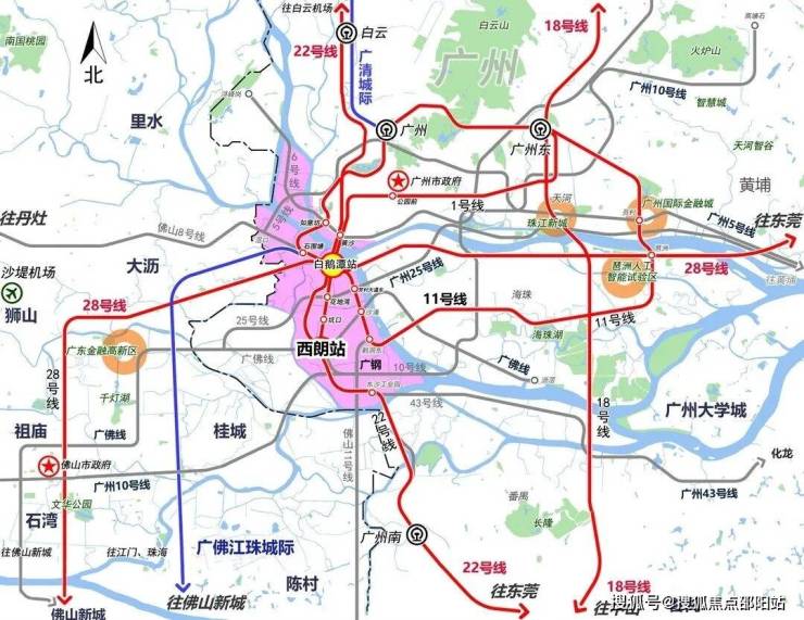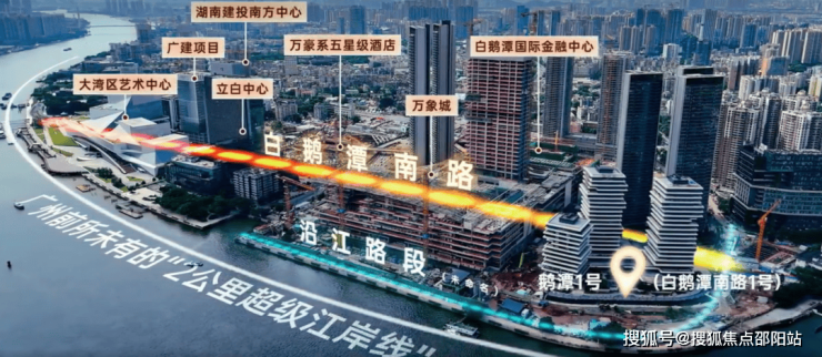 区域配套高端资源加速集聚,白鹅潭万象城(约19万平方米)预计2026年开业,聚龙湾珠江太古里首开区计划2025年底建成,形成重奢商业矩阵。大湾区艺术中心(“三馆合一”项目)已于2025年5月启用,成为省级文化地标。地铁11号线(广州首条大环线)、22号线(时速160公里)等15条轨道线路交织,白鹅潭大道串联三大功能区,强化集聚辐射能力。