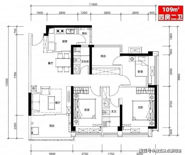 B03户型:109㎡四房二厅二卫