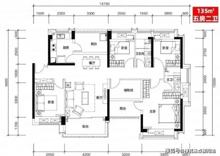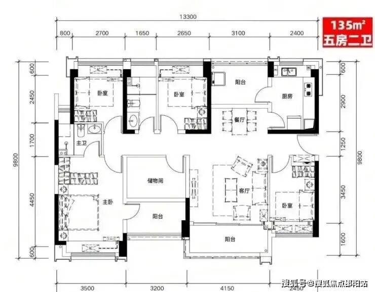 E户型:135㎡五房二厅二卫