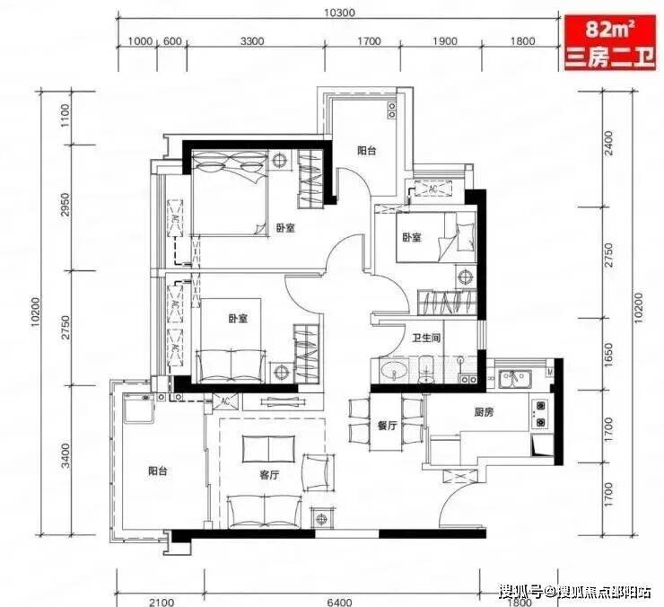 H03户型:81㎡三房二厅二卫