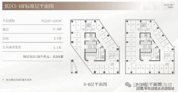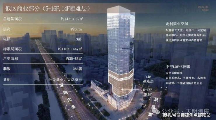 2️⃣塔楼商业5-16层,284套,约14713.39㎡,底价约3.4亿元,单价约2.3万
