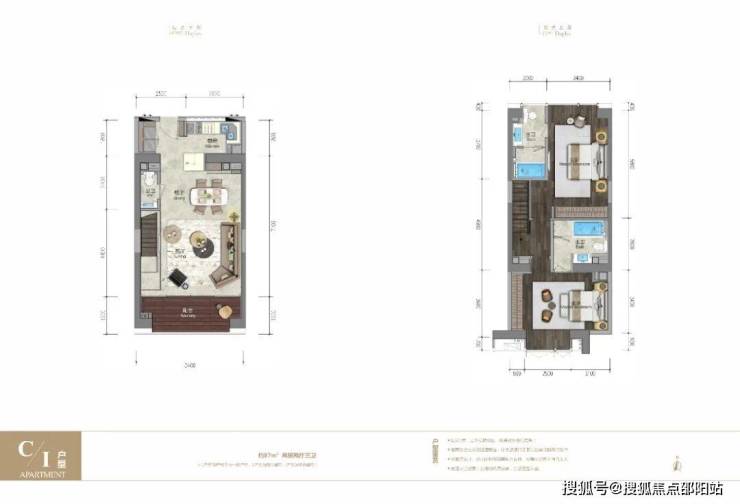 C 户型的样板间是深圳湾公馆与阿斯顿·马丁签署品牌合作协议,携手大师设计团队为项目量身定制的一个面积约为 87㎡ 的复式两房,整个设计历时 6 个多月,造价超百万。