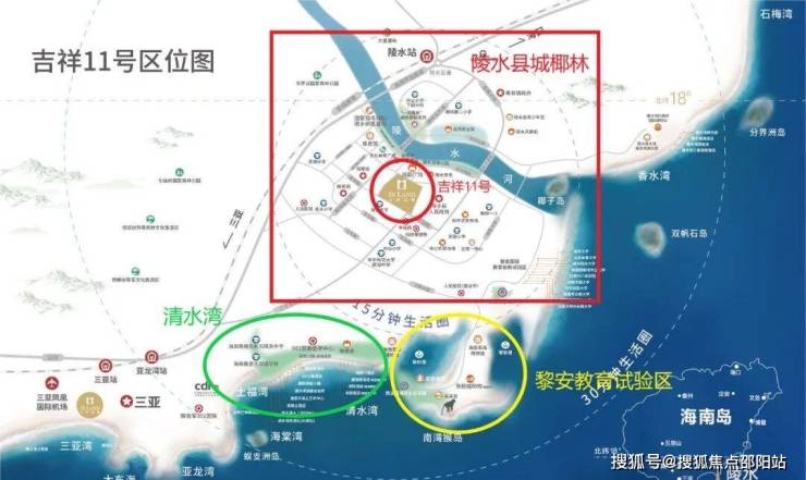 项目位于海南陵水县城椰林镇,陵水河南侧,挨着陵水的商业中心海韵广场,周边配套齐全,生活出行方便