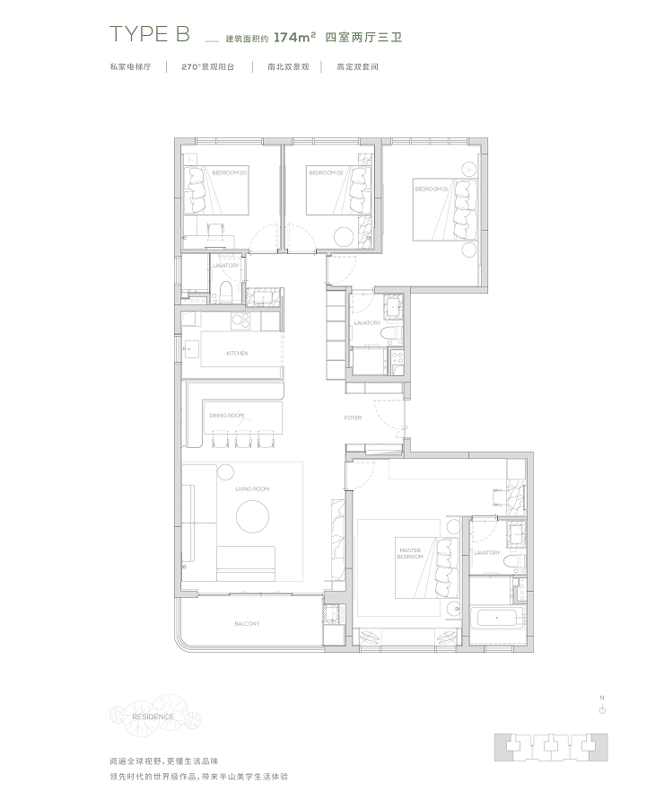 所有楼栋均为16-17层纯板式小高层设计,专梯专户,打造低密舒适人居奢宅。7.1米、270度零死角的超宽视野,打造广州之最,7.1米无界横厅,折叠IMAX影院级宽幕落地窗景 。打造广州首座全铝玻璃幕墙住宅作品——全铝玻璃幕墙仅被用于世界级豪宅