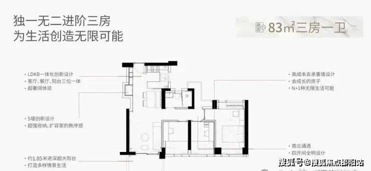 面积:约83-97-119㎡3-4房