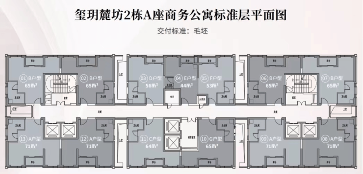 【舒适梯户】44-71㎡舒居1-2房,6梯13户,便捷通达