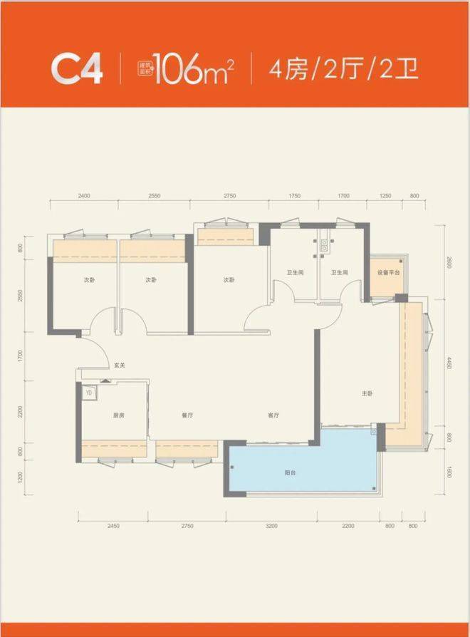 产品面积:建面约76-106㎡三至四房