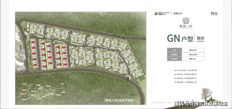 联排:建面约102-139平,庭院空间更大,得房率最高可达约160%,GN户型、HN户型随意组合,度假生活更自在。