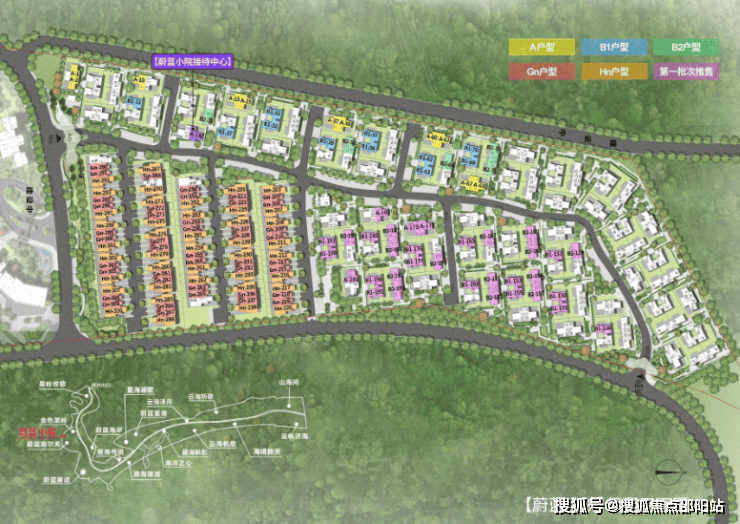 1、项目总规图(红色圈为“蔚蓝小院”):