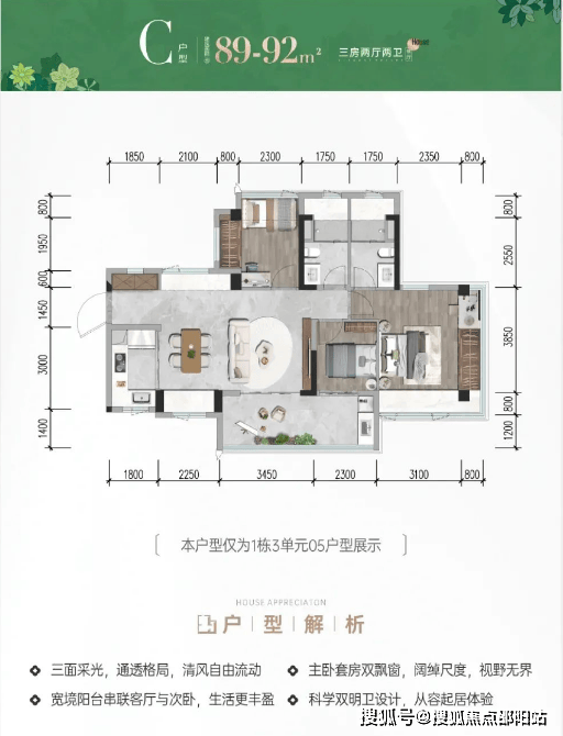 C户型89-92㎡3房2卫横厅: